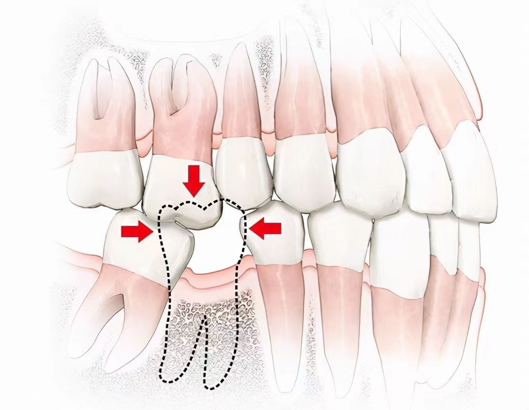 如為多顆牙缺失,長期邊側(cè)咀嚼,將導(dǎo)致雙側(cè)顳頜關(guān)節(jié)紊亂和面部不對稱。或是整體咀嚼效率降低引起的消化不良,加重胃腸道負(fù)擔(dān)。