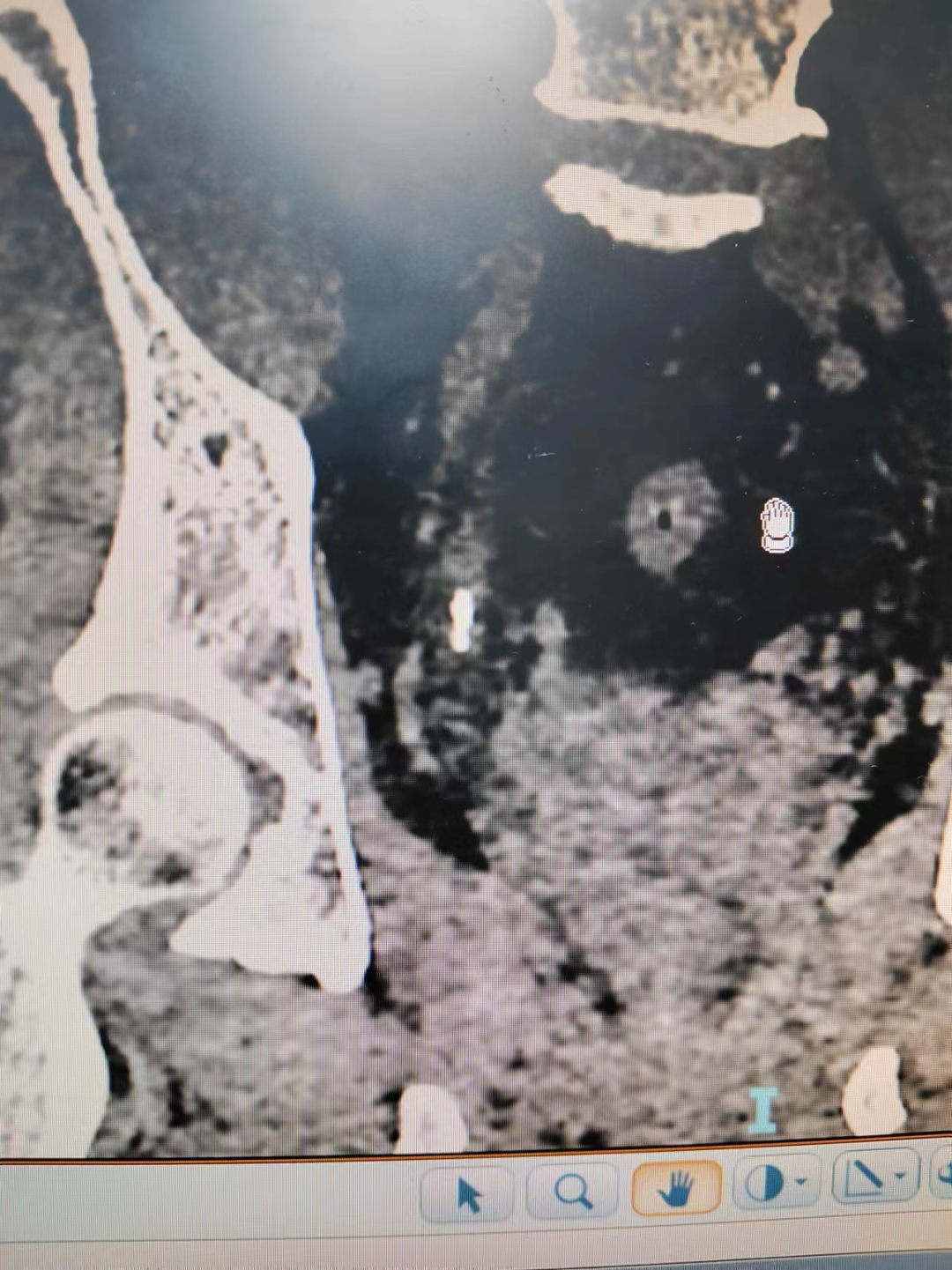 接診以后,立刻安排患者進(jìn)行CT檢查,發(fā)現(xiàn)岳先生的結(jié)石是多個(gè)結(jié)石掉落在輸尿管內(nèi),形成“石街”。造成泌尿系統(tǒng)完全性梗阻,患者肌酐已經(jīng)升高。